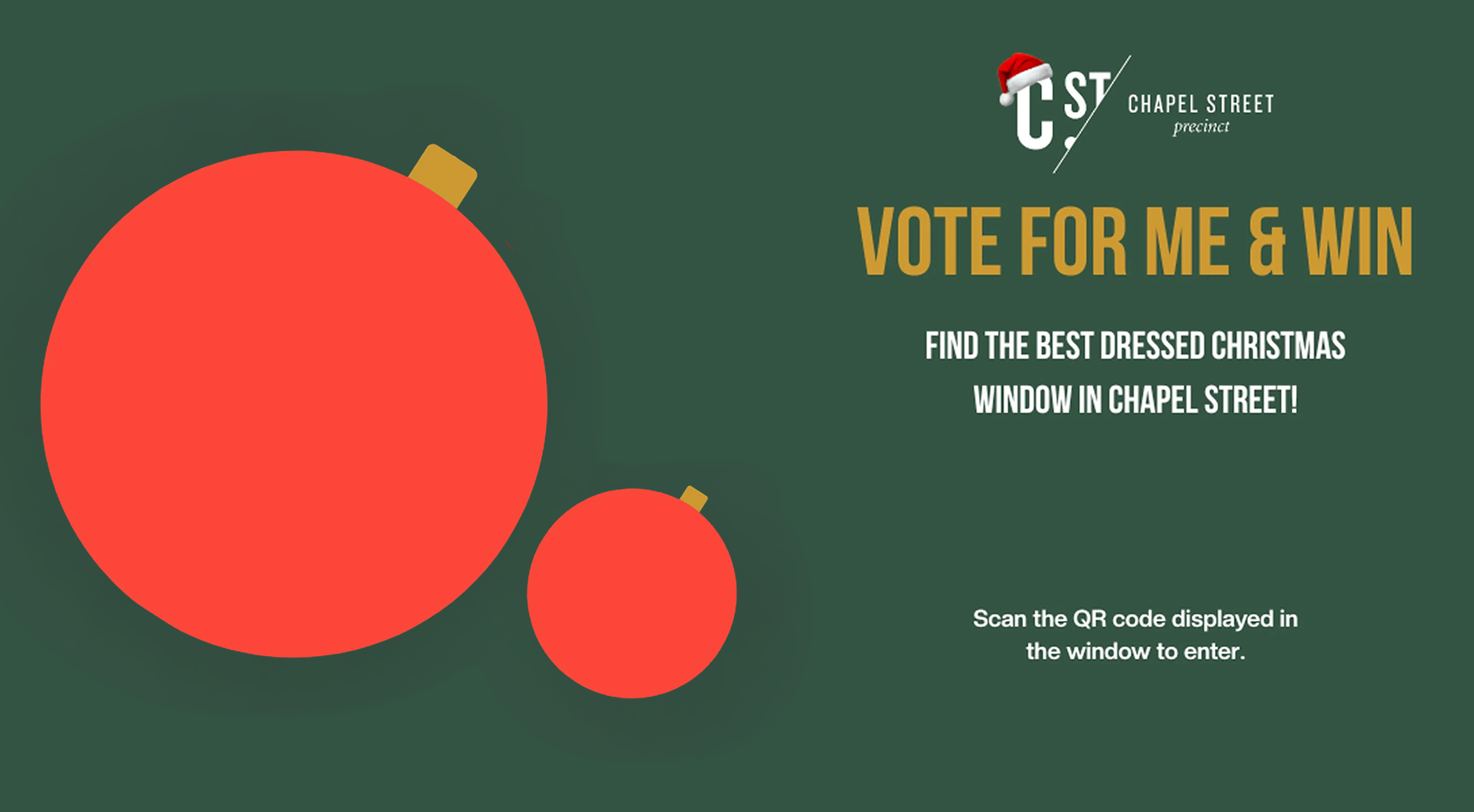 Get down to Chapel Street this Christmas to explore, discover your favourite Christmas window. Vote for best