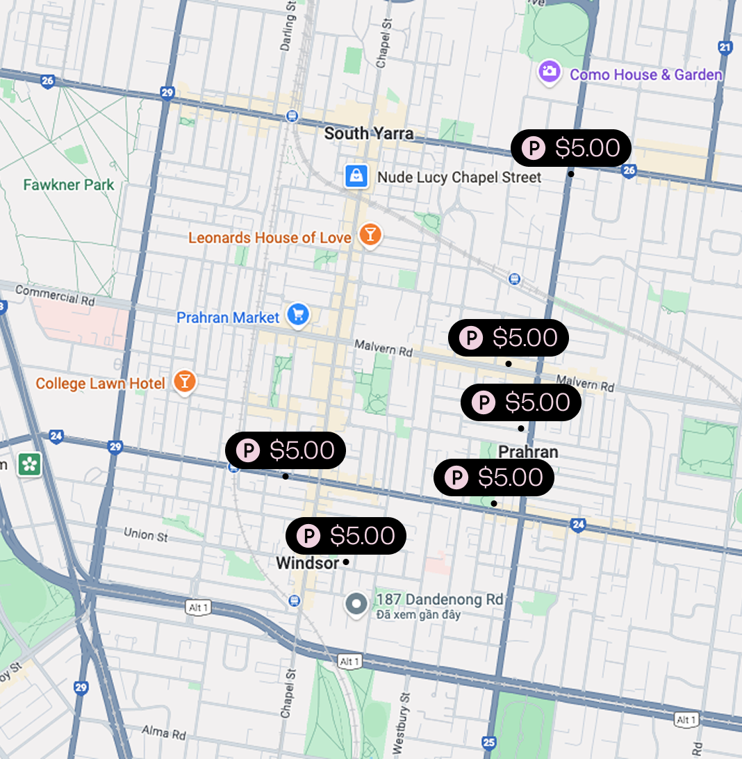 | Secure Parking | Near Toorak Rd | $5.00/hours |