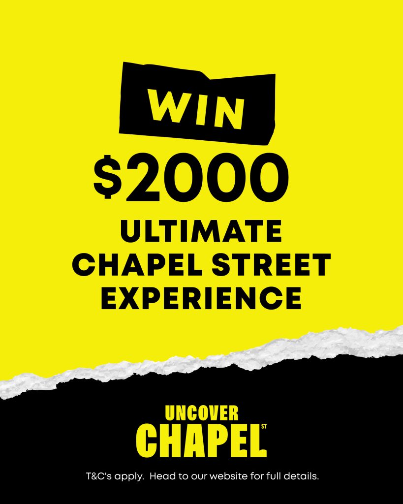 One winner will receive the Ultimate Uncover Chapel Street Experience, valued at $2,000, made up of vouchers and offers from participating traders. Prize is curated to your preferences, subject to availability.